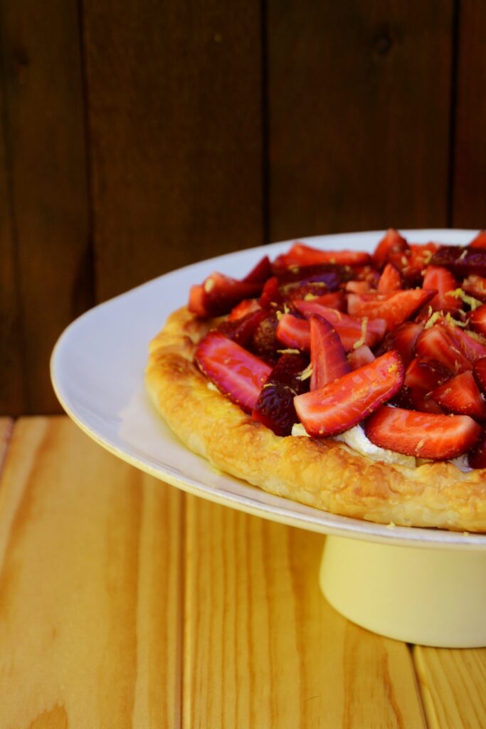 A melhor tarte de morangos que comi foi em França, e a pior tarte que comi foi em… França! Na mesma pastelaria, uns bons anos mais tarde. A melhor tarte era de uma generosa massa areada, com chantilly aveludado, morangos frescos e uma cobertura de brilho bem doce… nesta versão tento recriar essa mesma tarte, mas a preguiça é grande, por isso opto pela massa folhada e, para lhe dar o meu toque de je ne sais pas quoi! adiciono o lemon curd caseiro.