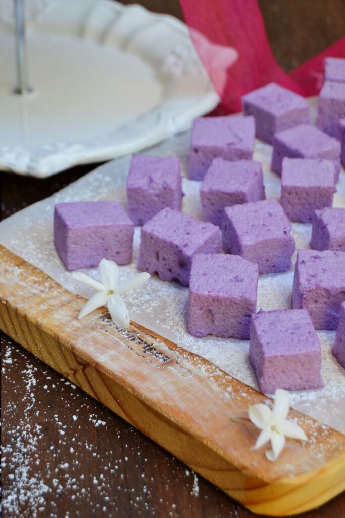 6. Corte os marshmallows em cubos e envolva-os em açúcar em pó.